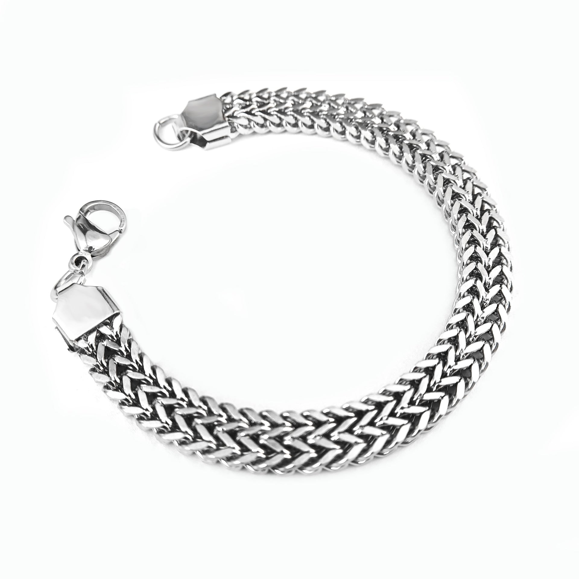 Crafted from premium stainless steel with a titanium finish, this bracelet is 100% non-fading, rust-proof, and skin-safe, built to last as long as your confidence. The woven metal pattern gives it a punk, mechanical edge – making it a top pick for hip-hop lovers, streetwear fans, and anyone who owns their attitude 🔧🔥