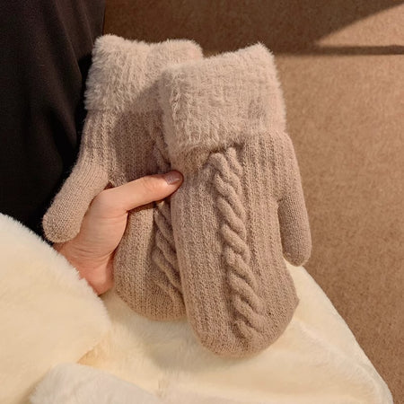 Korean-Style Couple Fleece-Lined Winter Gloves