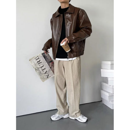 Korean Style PU Leather Jacket Men | Autumn Winter Retro Motorcycle