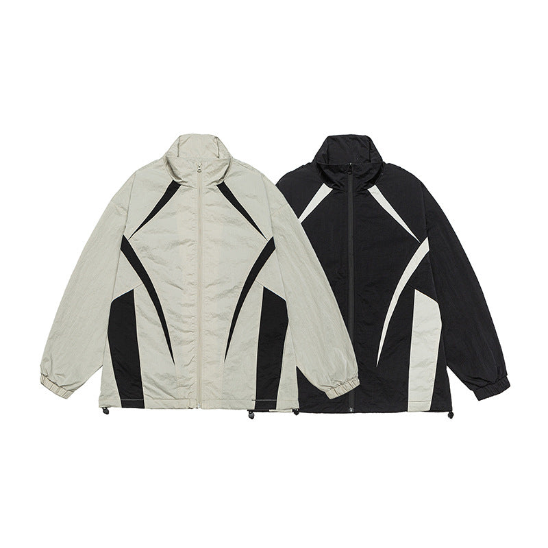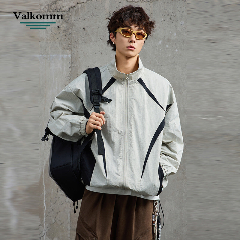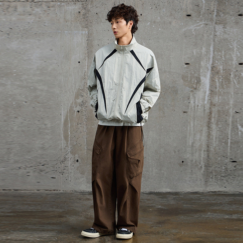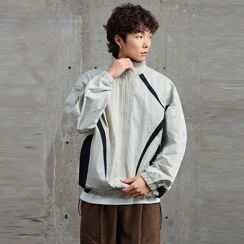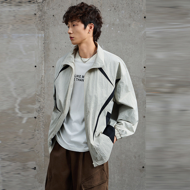 Laike Retro Splicing Jacket – Men’s Stand Collar Casual Zip Coat