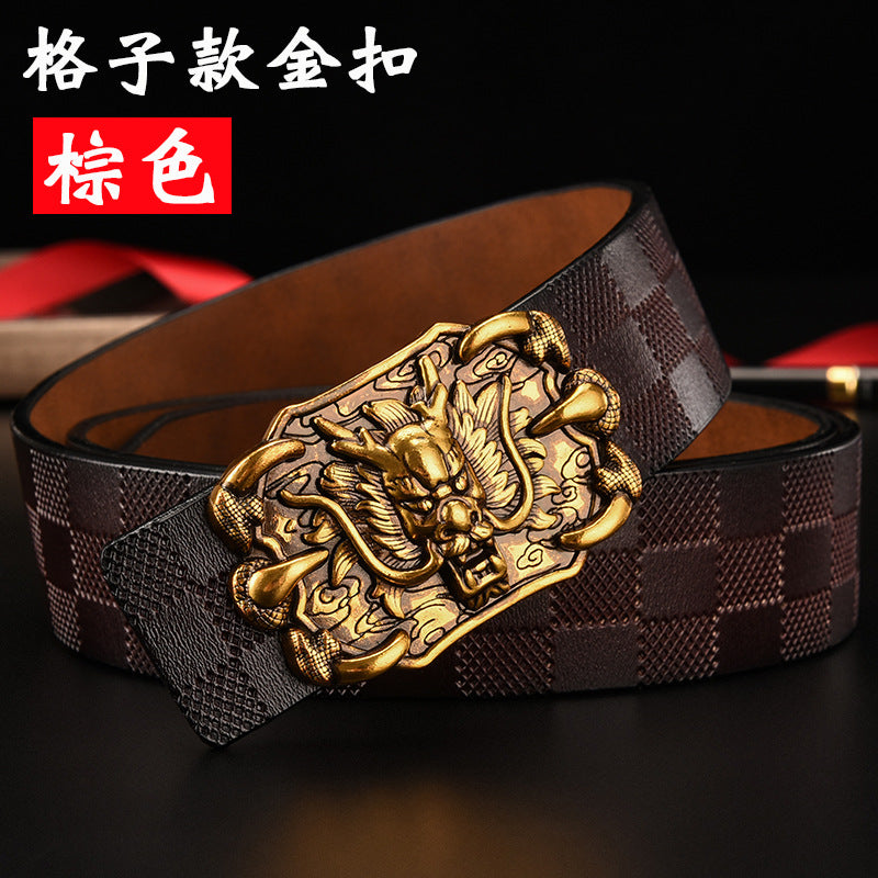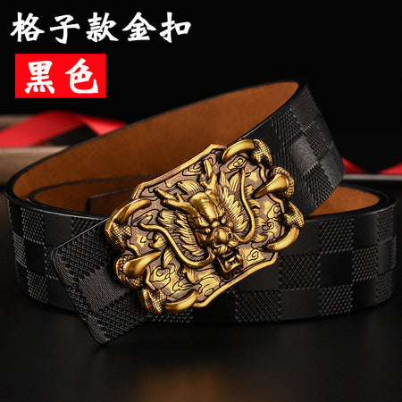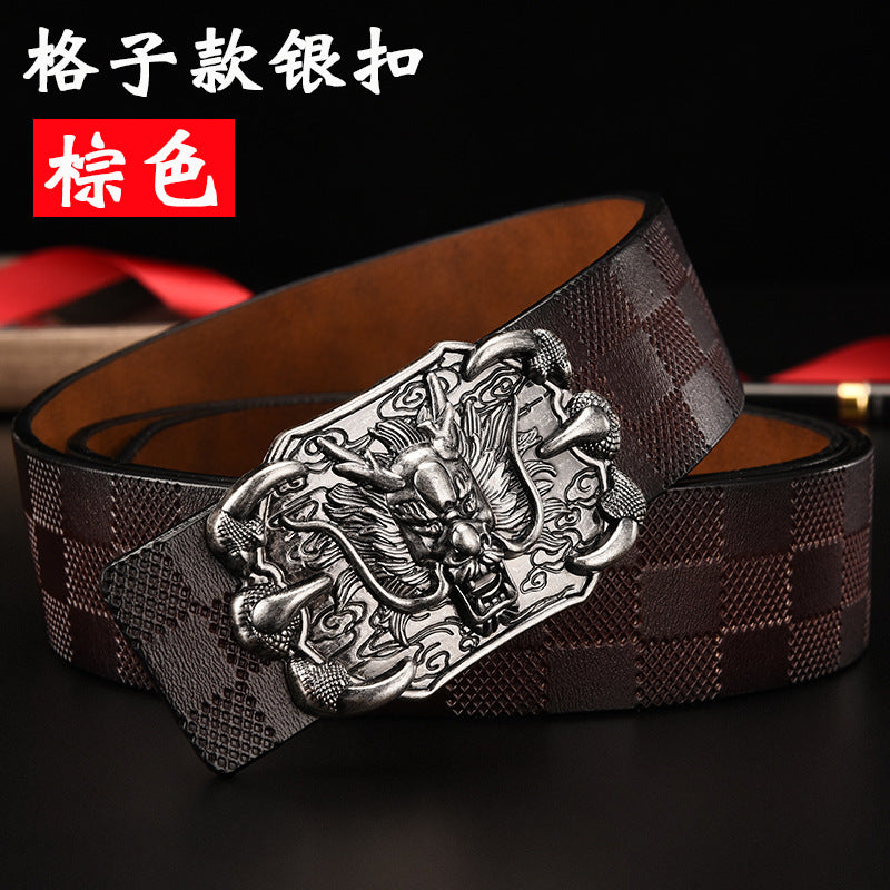 Retro Smooth Buckle Leather Belt β Plaid Croc Style