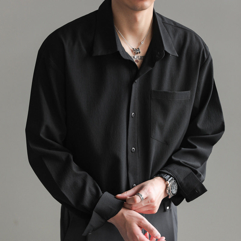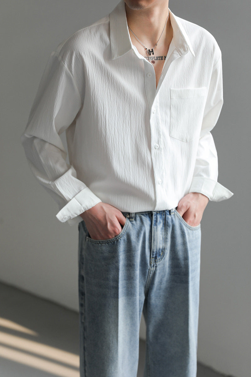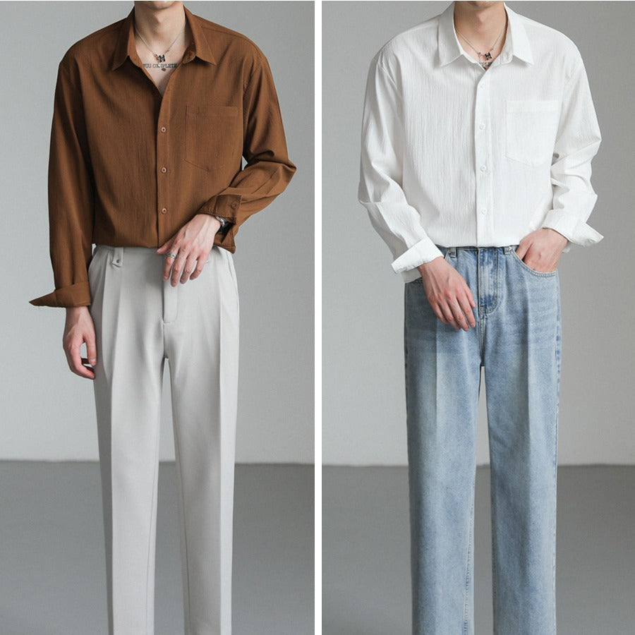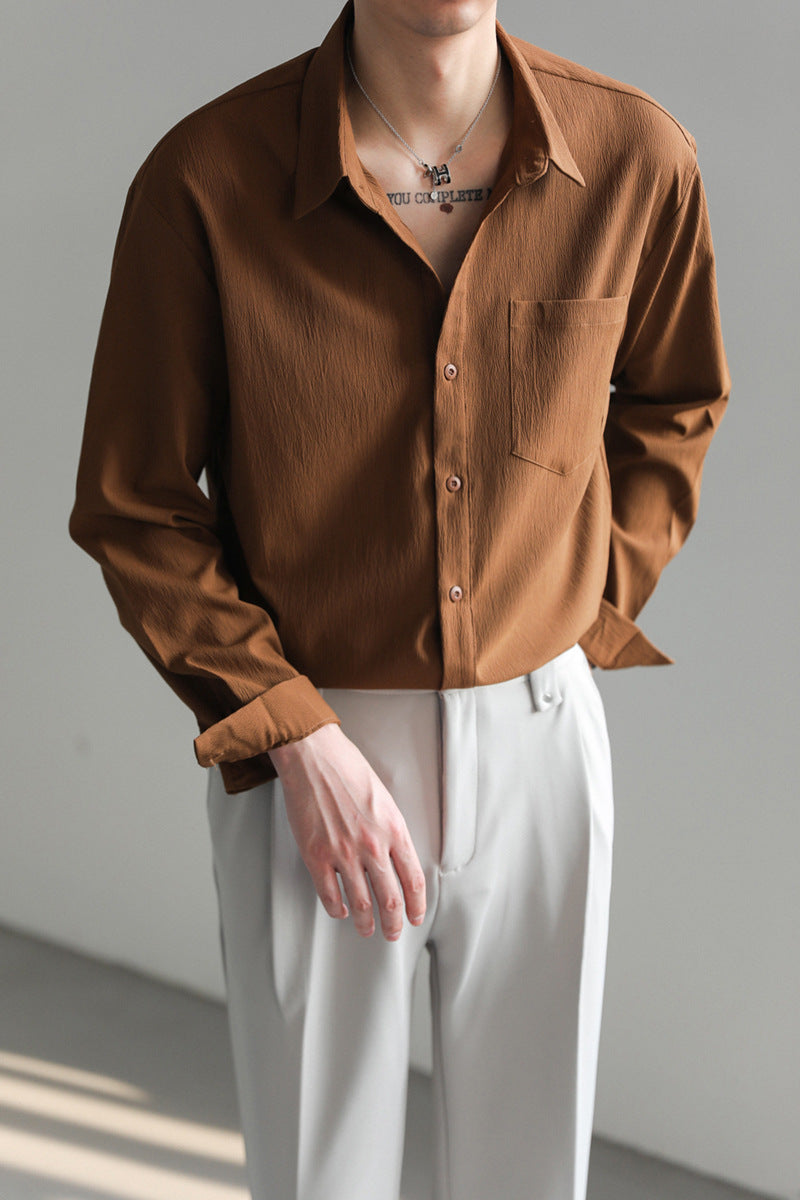 Korean Solid Color Shirt – Handsome Non-Iron Casual Top