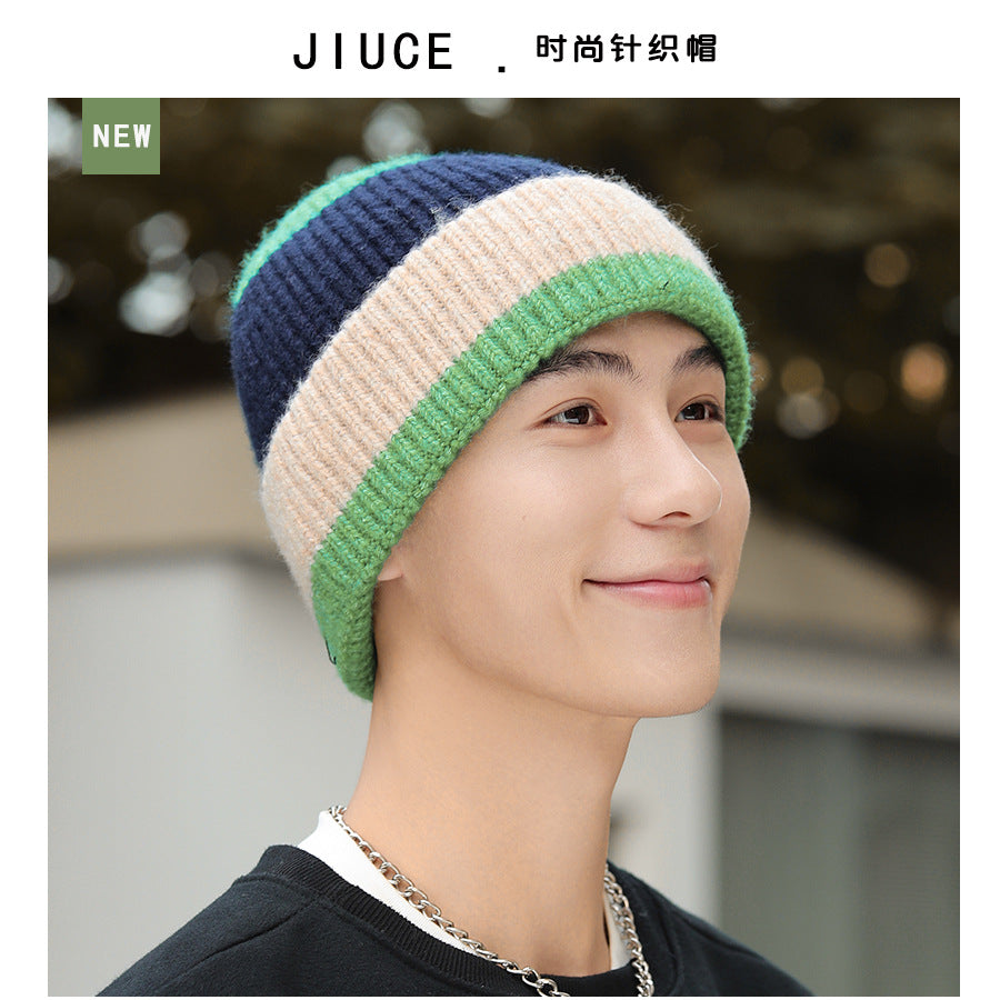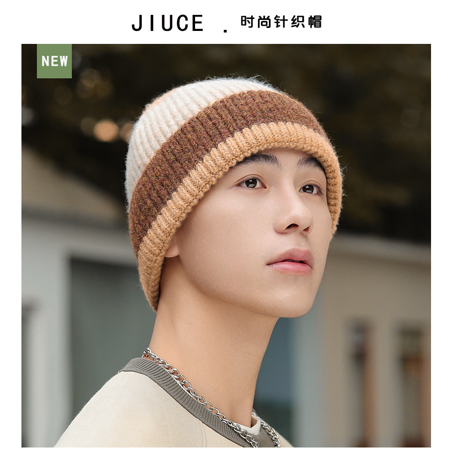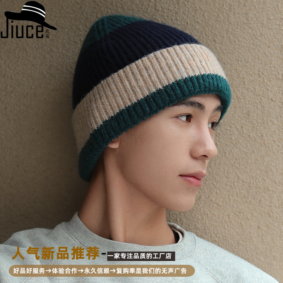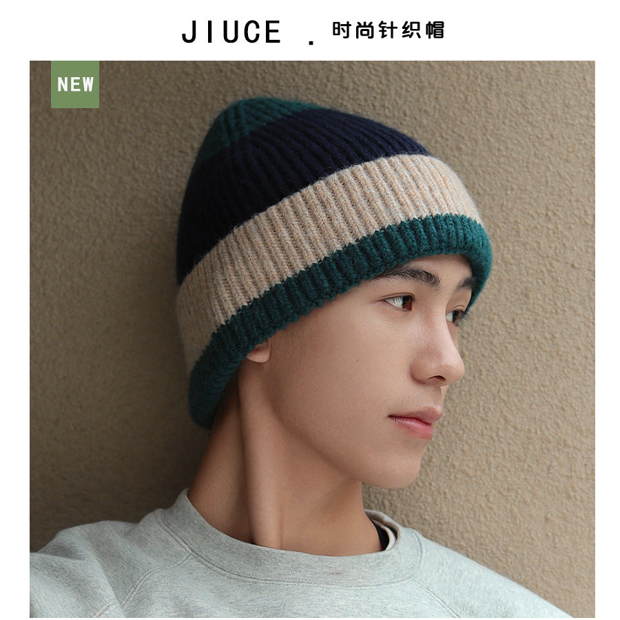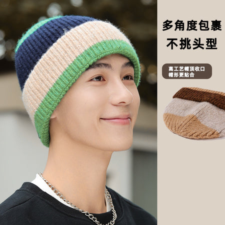 Men’s 2025 Winter Korean Knitted Hat – Thick Wool Color-Block Beanie