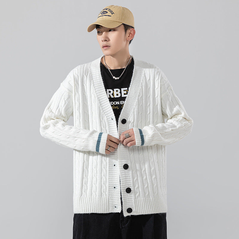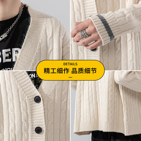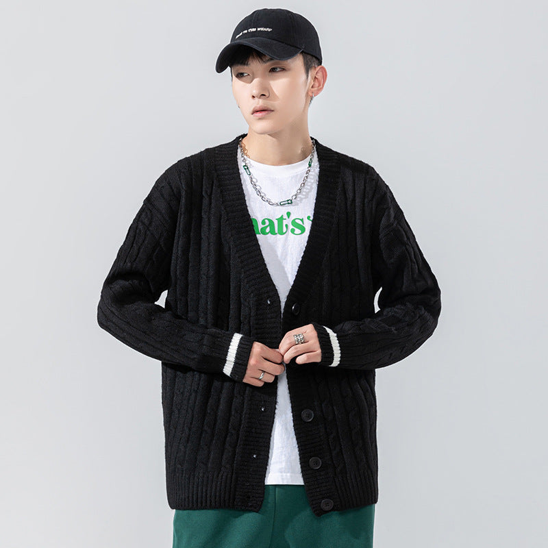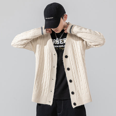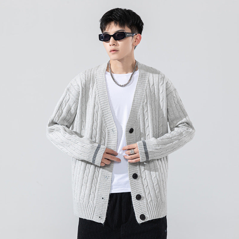 Men’s American-Style V-Neck Knitted Cardigan Sweater