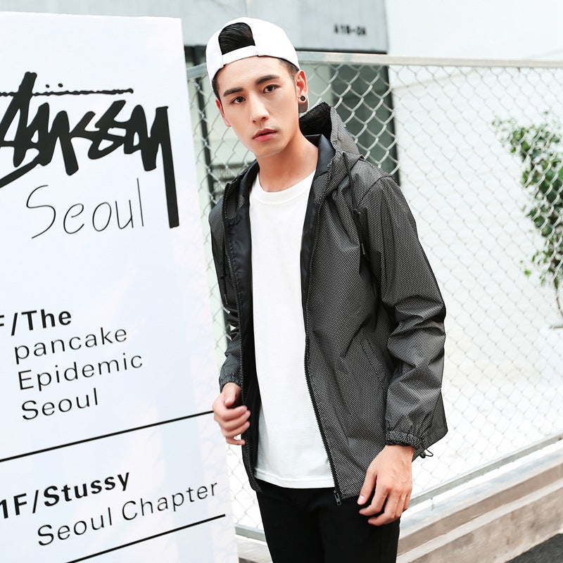 Men’s Autumn Winter Windbreaker Youth Reflective Sports Jacket