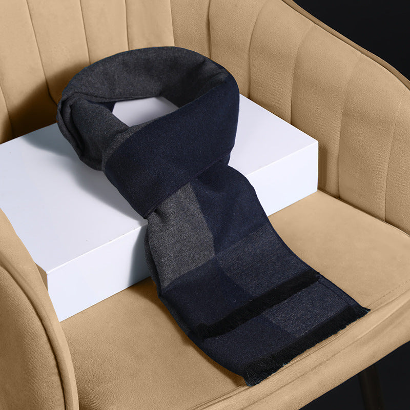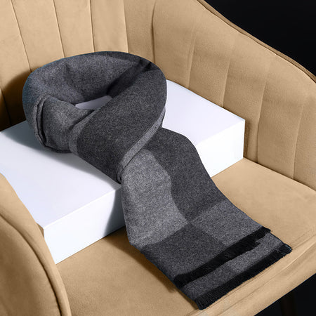 Men’s Black & Gray Plaid Scarf Winter Thick Warm Brushed