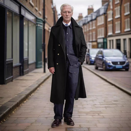 Step into autumn and winter with confidence in our men’s British wool trench coat. Designed for warmth and elegance, this long coat combines classic British style with modern fashion, making it a must-have piece for every man’s wardrobe.