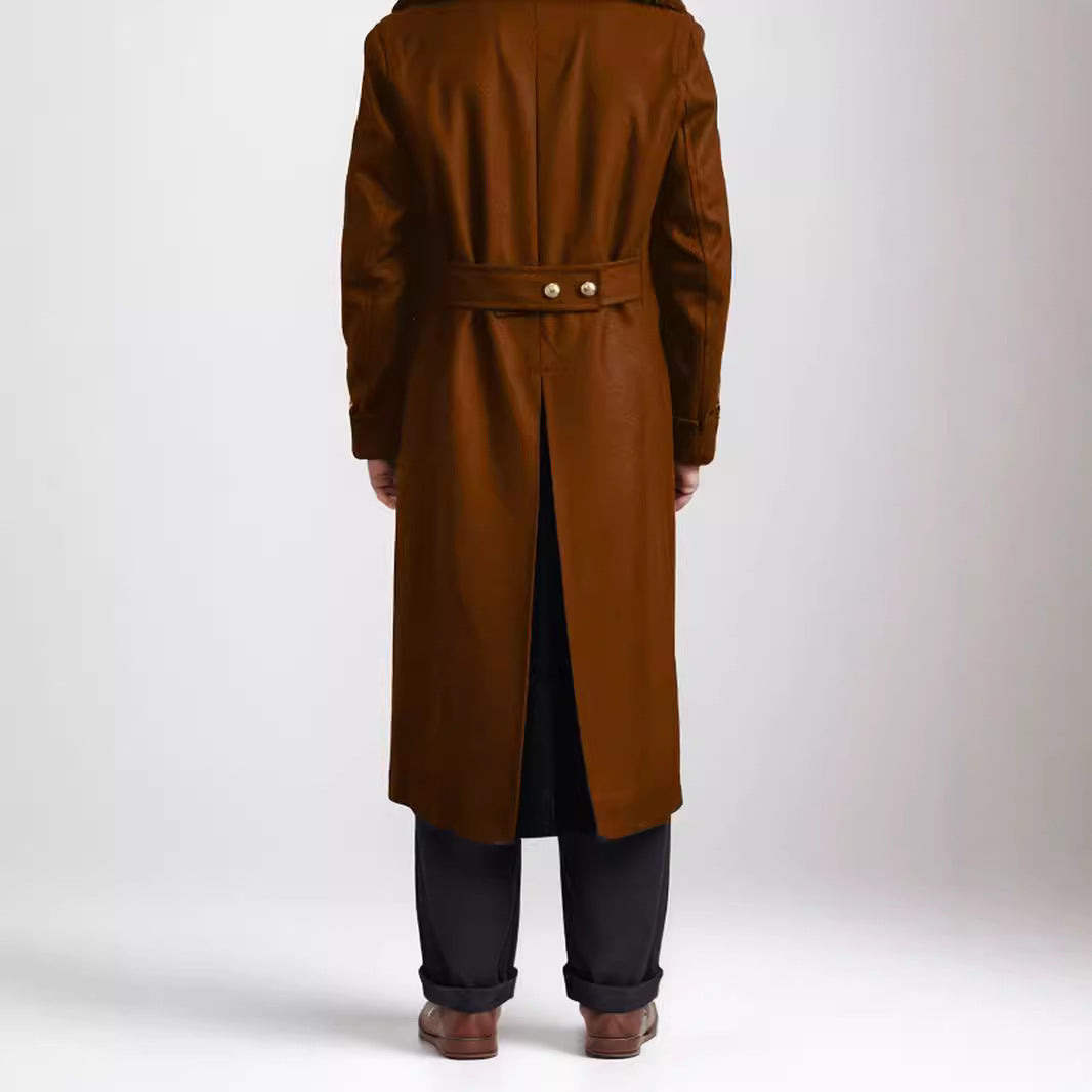 Men’s British Wool Trench Coat Long Autumn Winter Jacket