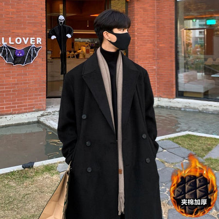 Men’s British Woolen Mid-Length Coat Thickened Winter Jacket