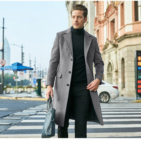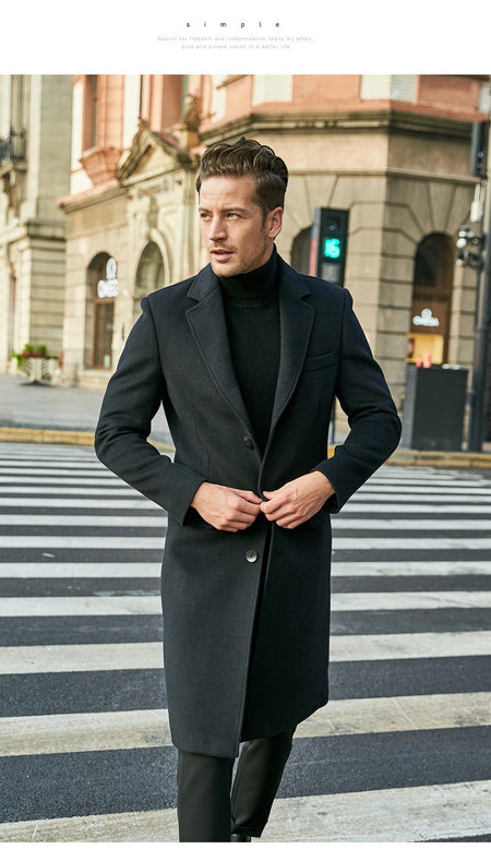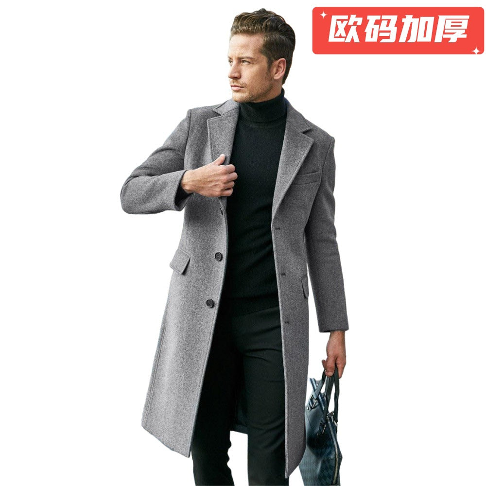 Men’s British Woolen Outwear Autumn Winter Long Sleeve Coat