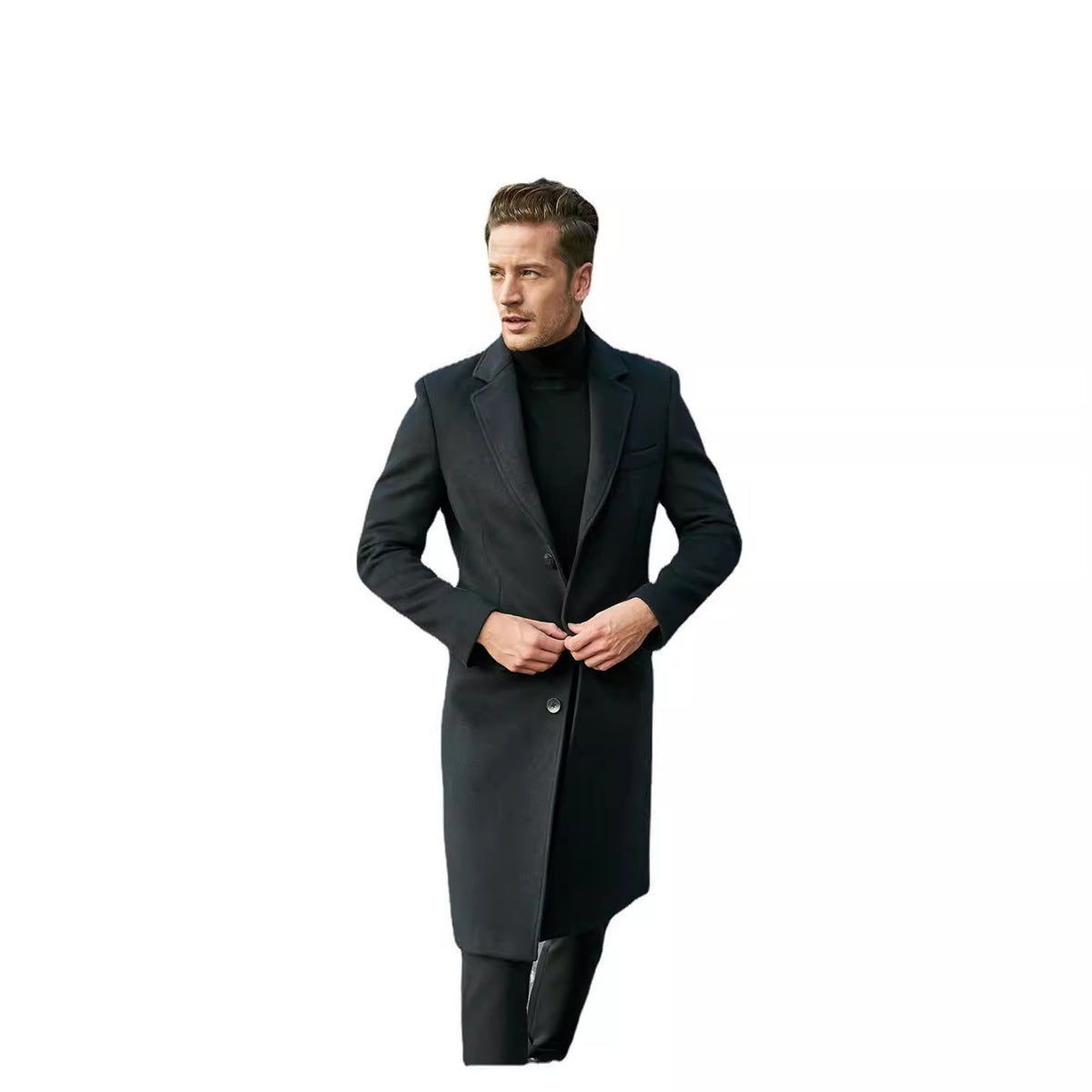 Whether you’re heading to the office, going out for dinner, or enjoying a casual day outdoors, this autumn and winter woolen outwear is your go-to piece. Its timeless design makes it easy to pair with jeans, trousers, or formal wear, ensuring you always look polished. The warm interior lining shields you from the cold, while the sleek silhouette highlights a masculine, confident look.