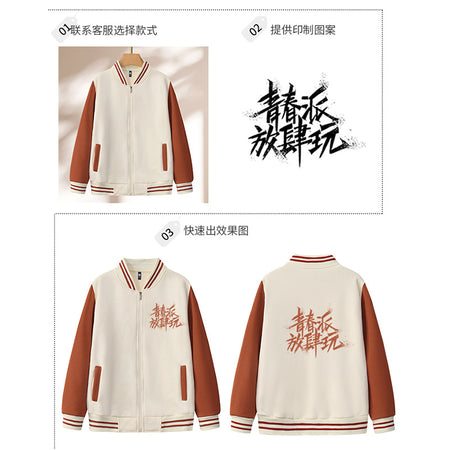 Designed for schools 🏫, sports teams 🏀, and college clubs 🎓, this jacket can be fully customized with your printed logo 🖨️ — making it ideal for team spirit events 🎉, competitions 🏆, and group identities 🤝. The baseball collar and college-inspired cut give you that timeless, youthful look ✨, while the durable stitching 🧵 ensures it lasts through daily wear.