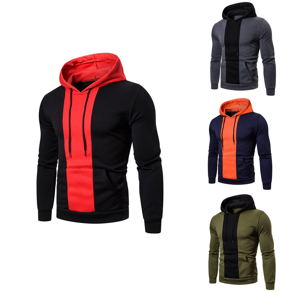 Men’s Color-Matching Hoodie Casual Loose Autumn Coat