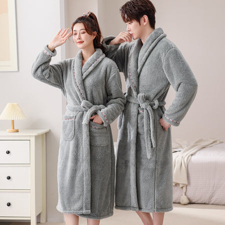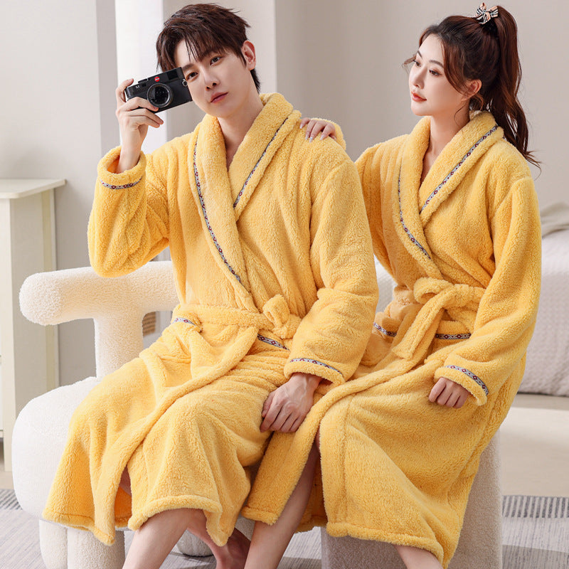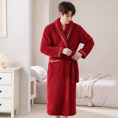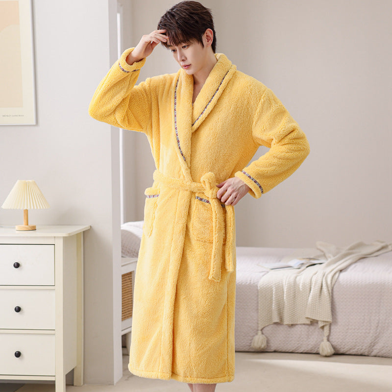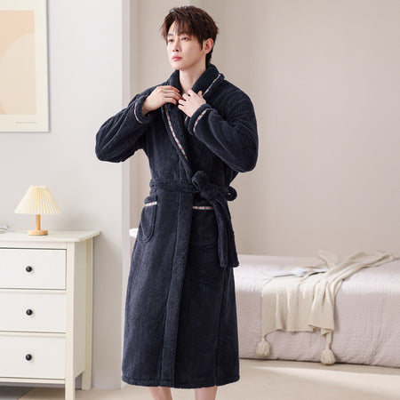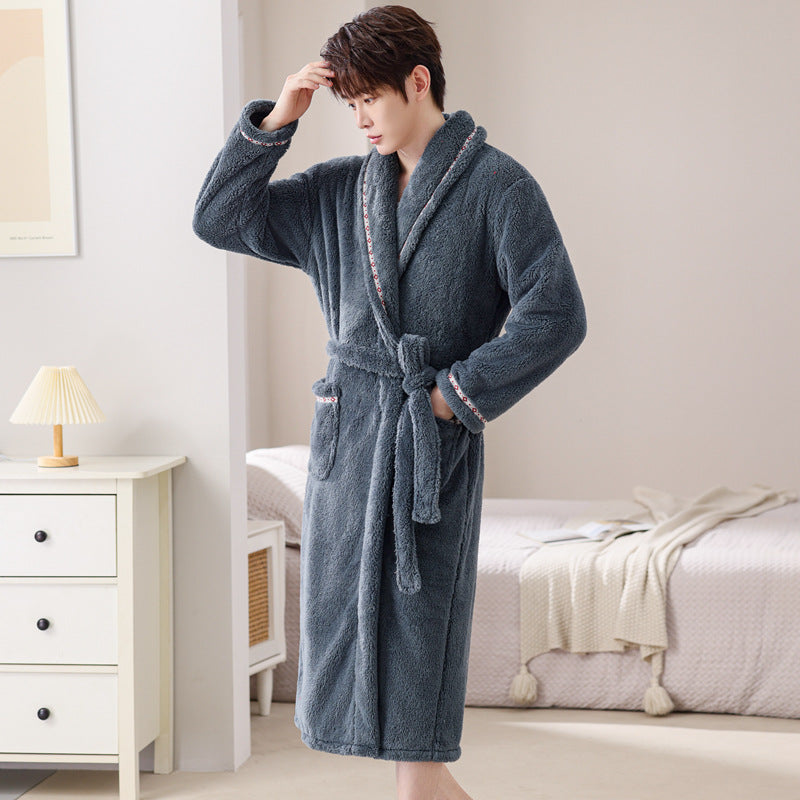 Upgrade your loungewear collection with this men’s long thickened coral fleece bathrobe – combining comfort, style, and warmth for everyday home wear.