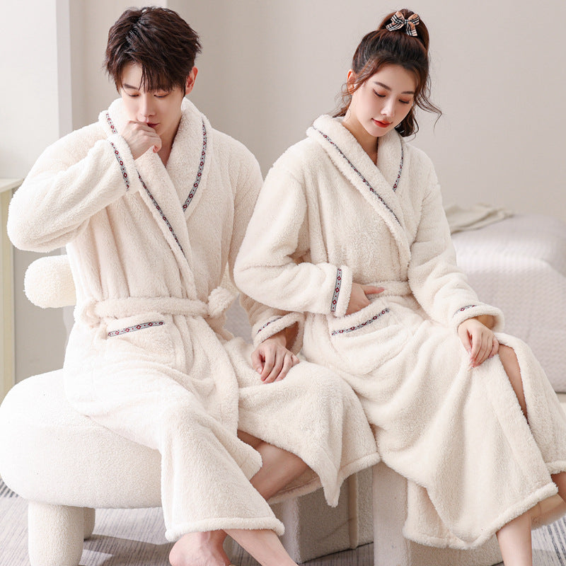 Men’s Coral Fleece Bathrobe – Thick Warm Autumn Winter Robe