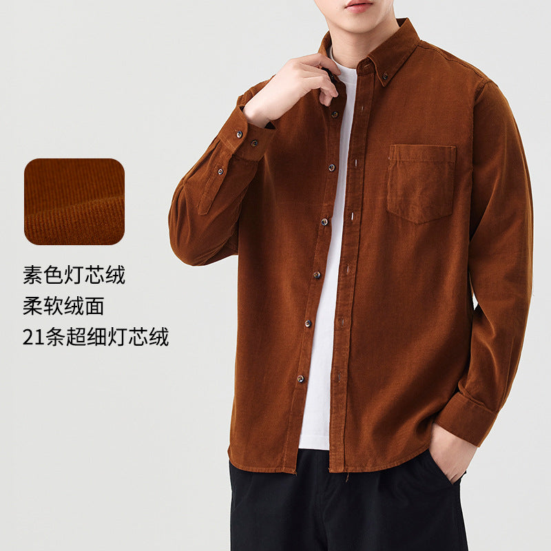 Men’s Corduroy Long Sleeve Shirt – Retro Autumn Winter Wear
