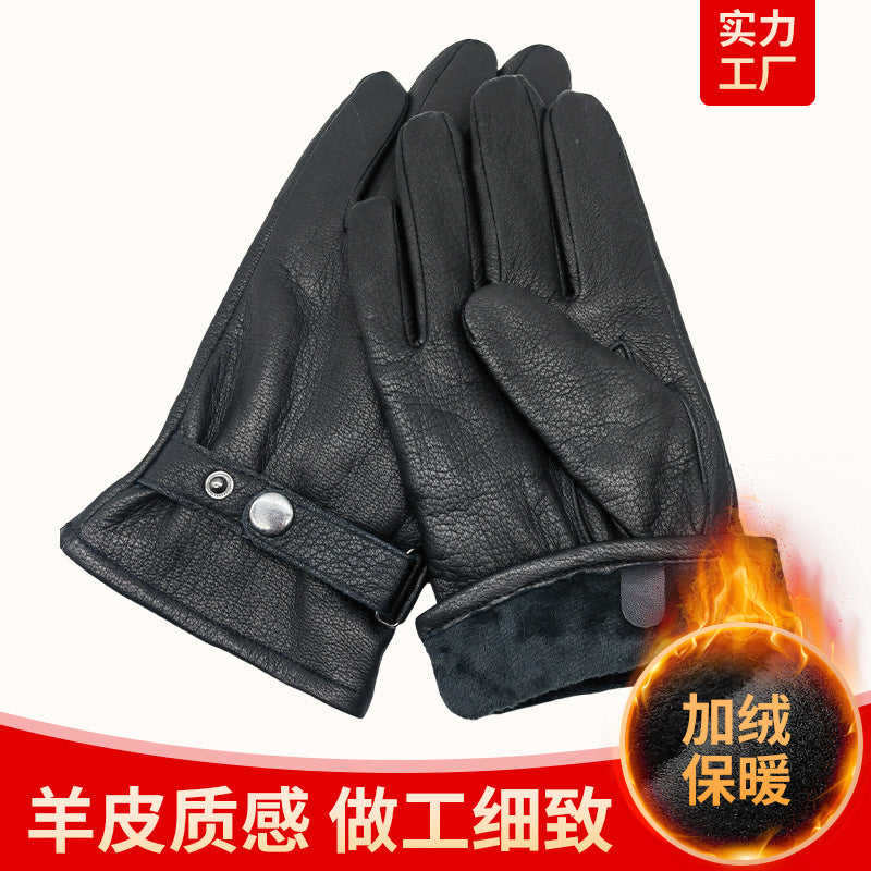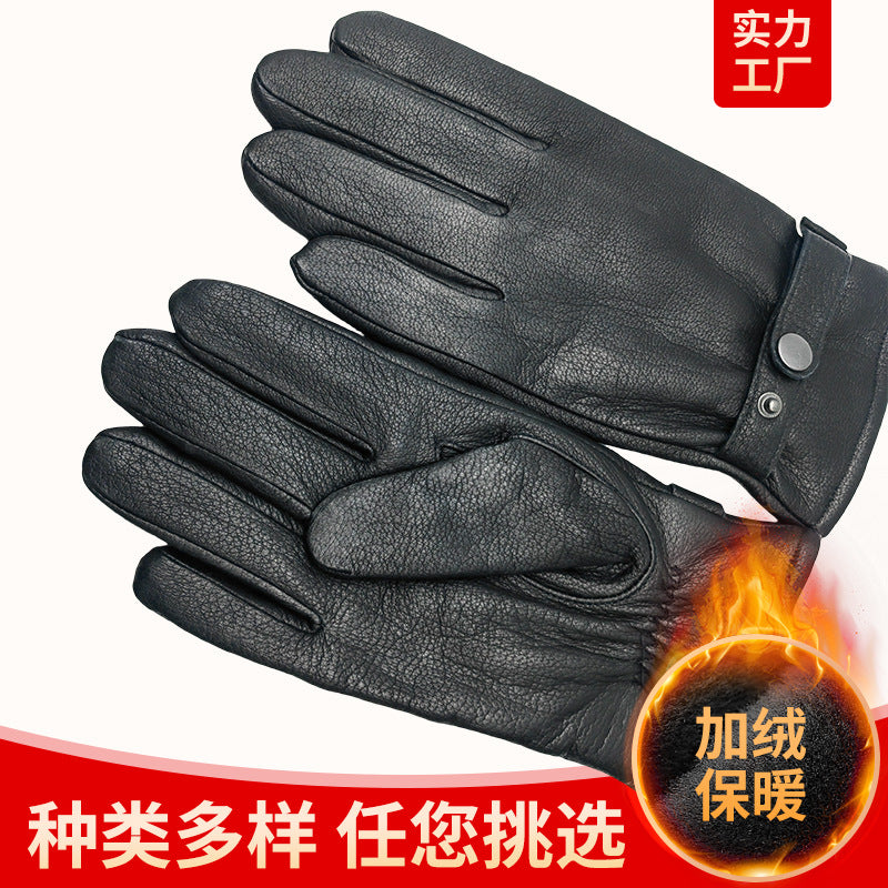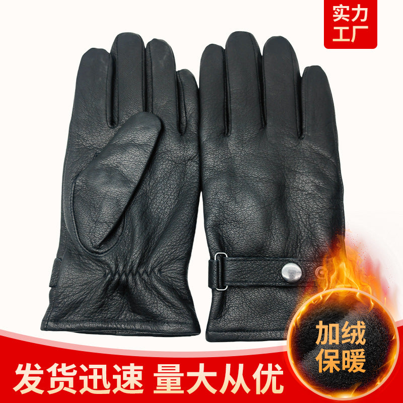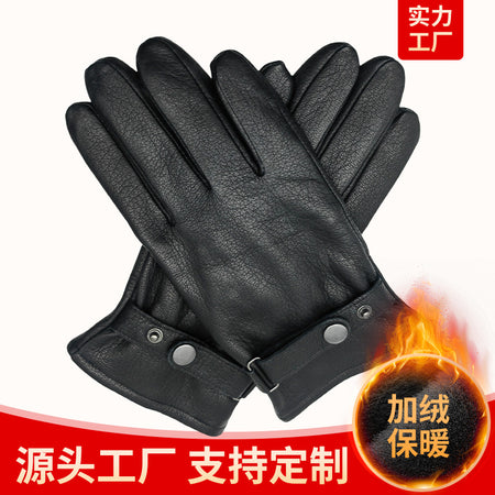 Men’s Deer Pattern Leather Gloves Fleece-Lined Warm Outdoor
