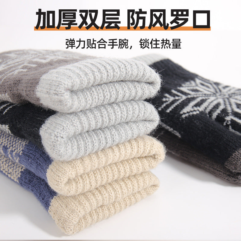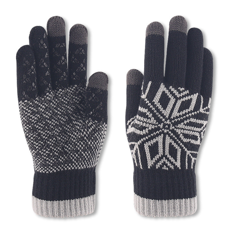 Men’s Double-Layer Jacquard Touchscreen Winter Gloves