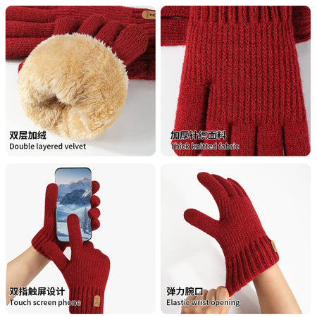 Men’s Double-Layer Touchscreen Wool Fleece Winter Gloves