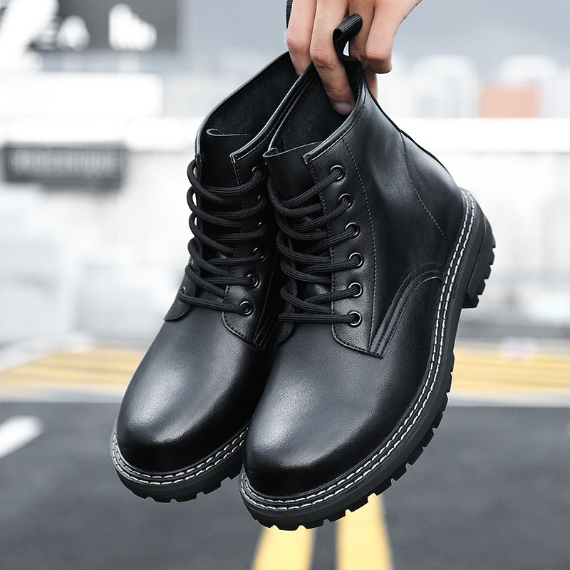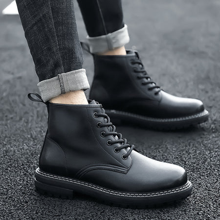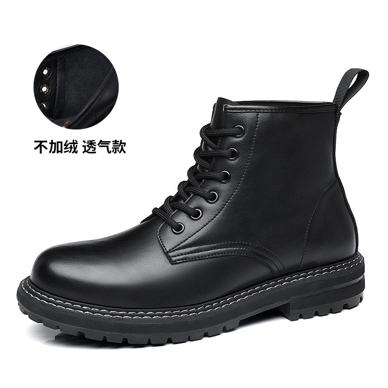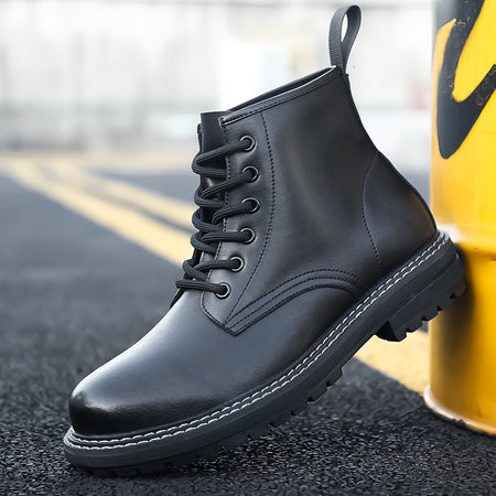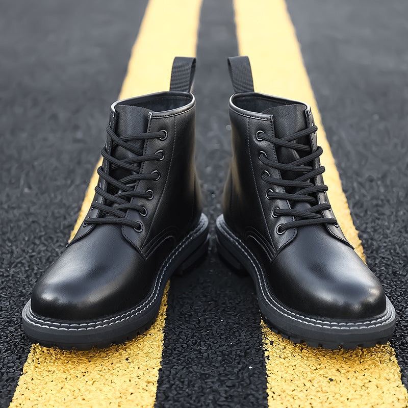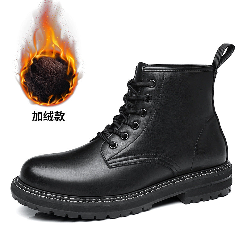Men’s Fleece-Lined Cowhide Korean Martin Boots