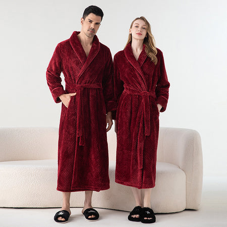Men’s Fleece-Lined Thick Bathrobe – Warm Autumn Winter Robe