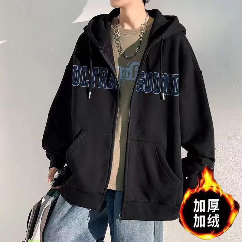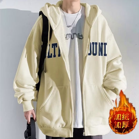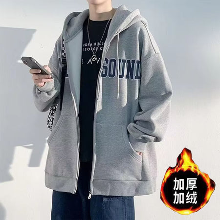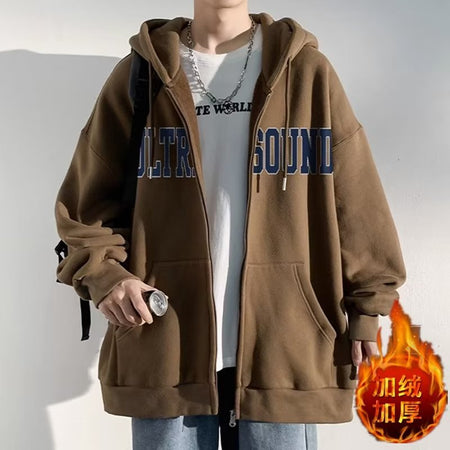 Men’s Fleece-Lined Zipper Hoodie Coat Autumn Winter