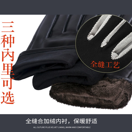 Men’s Genuine Leather Gloves Velvet-Lined Warm Autumn & Winter