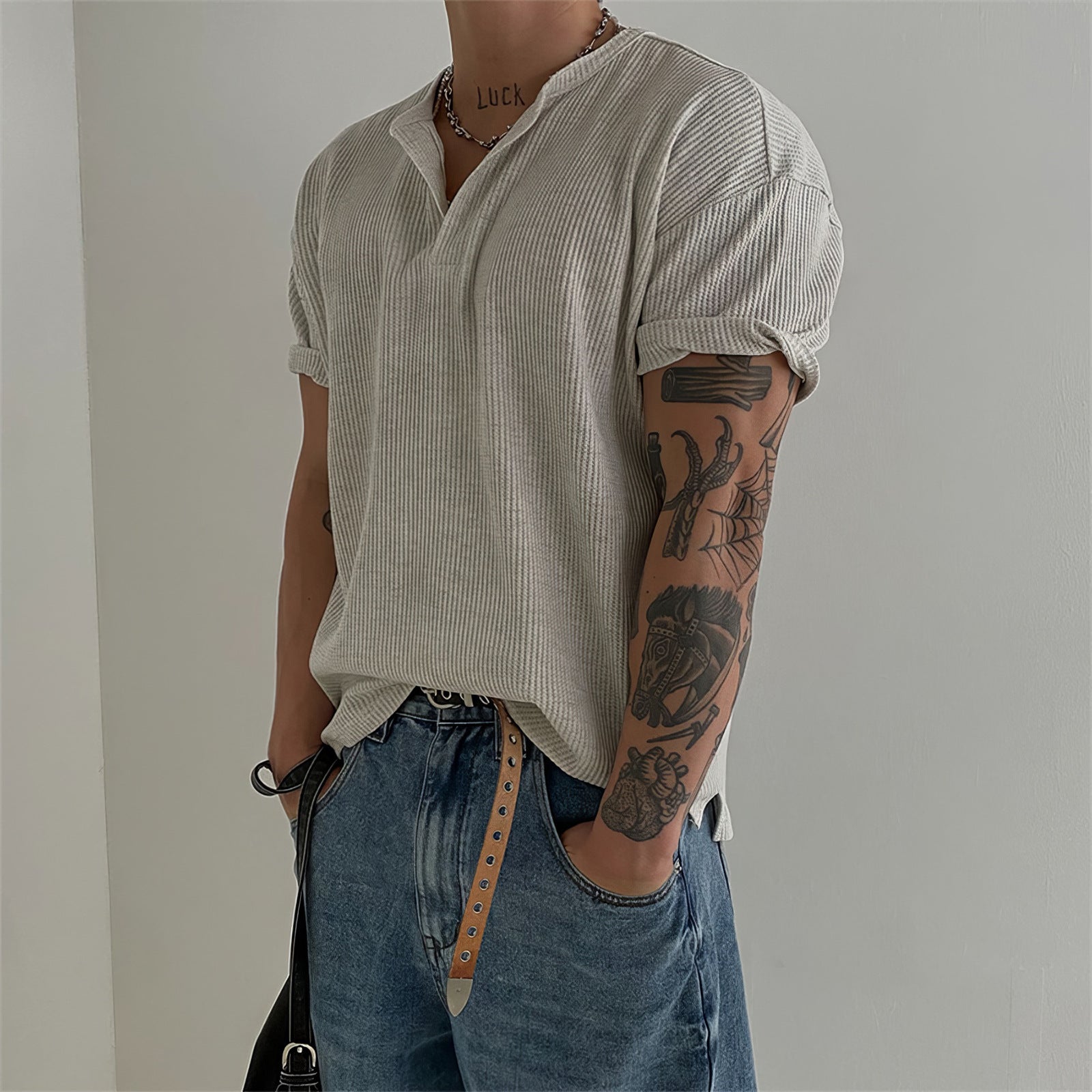 Upgrade your summer wardrobe with this Men’s Henry Collar Waffled Short-Sleeved T-Shirt – a perfect blend of American style simplicity and breathable comfort 🇳🇵☀️. Crafted with lightweight, waffle-textured fabric, this base top keeps you cool and fresh during Nepal’s warm months in cities like Kathmandu, Pokhara, and Biratnagar 🏙️🌄.