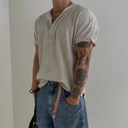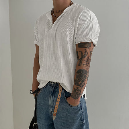 Men’s Henry Collar Waffle Short Sleeve T-Shirt – Summer