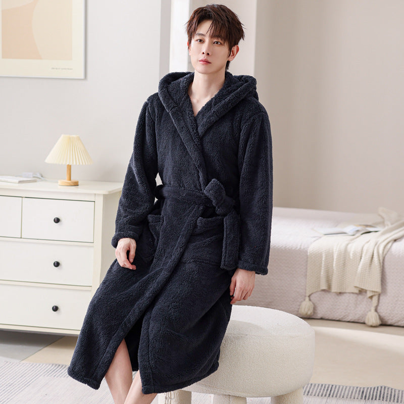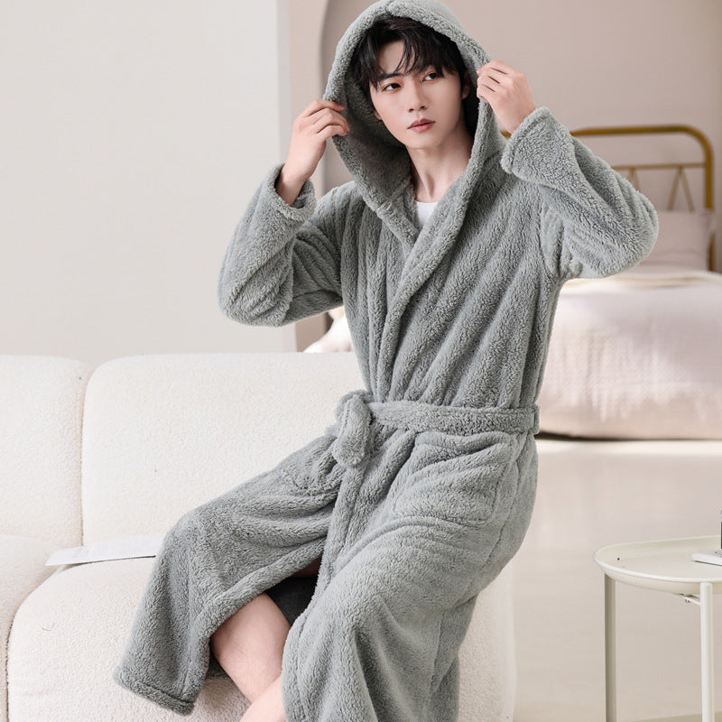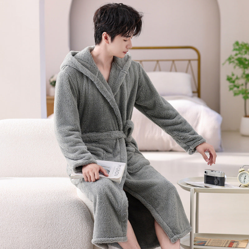 Upgrade your loungewear collection with this men’s thick hooded flannel bathrobe – combining comfort, style, and practicality for autumn and winter relaxation.