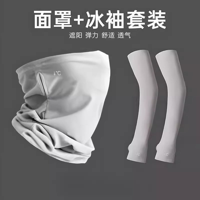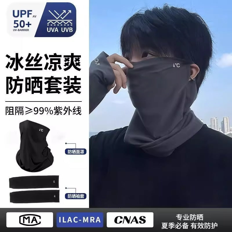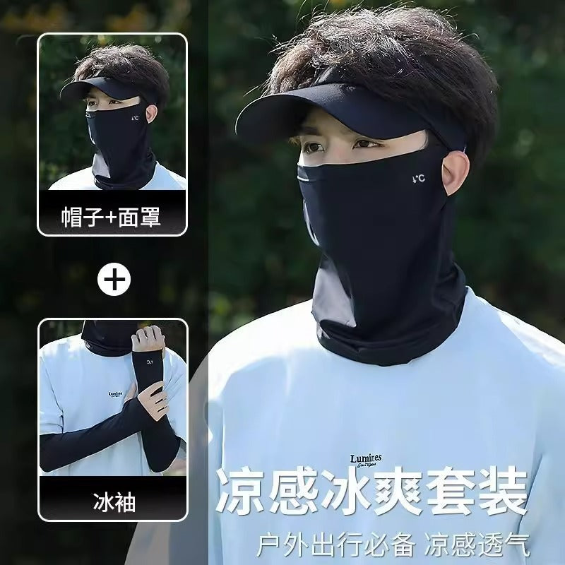 Men’s Ice Silk Cycling Mask Set – UV Sunshade Full Face & Sleeves