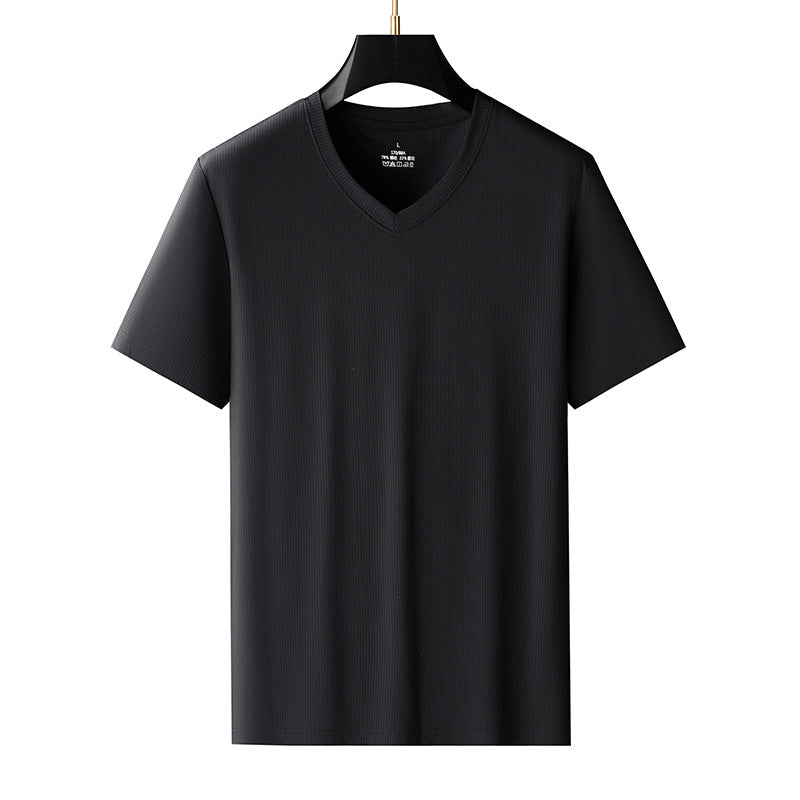 Men’s Ice Silk V-Neck T-Shirt – Plus Size Loose Summer Top