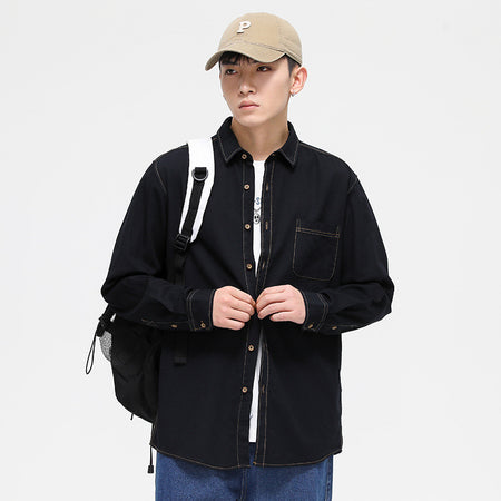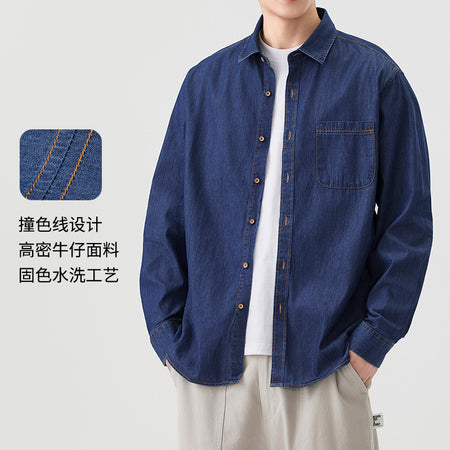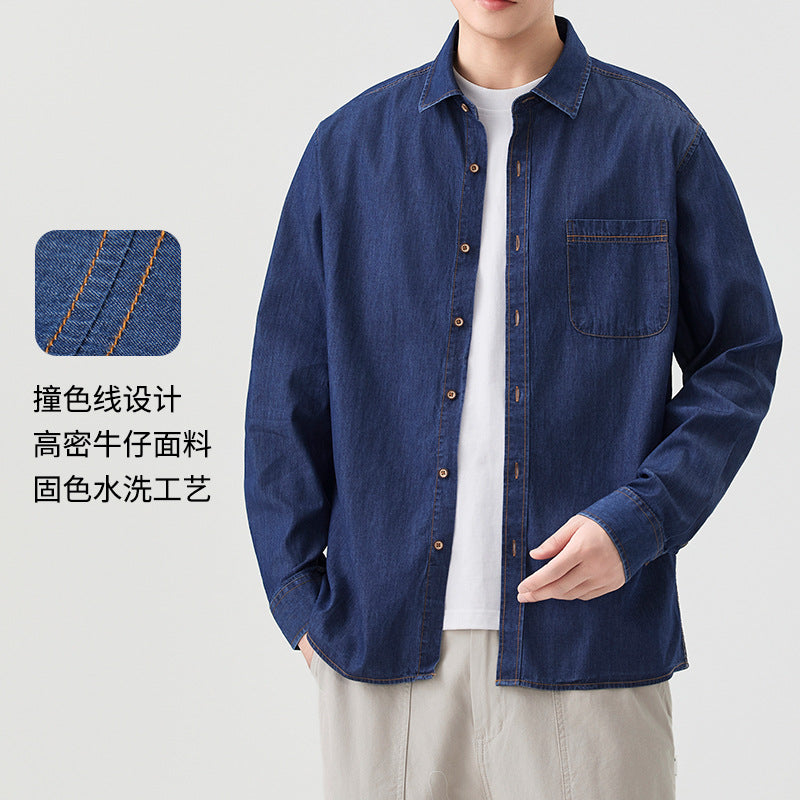 Men’s Japanese Cotton Denim Shirt – Slim Casual Spring Wear