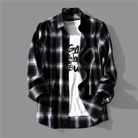 Elevate your streetwear with this Autumn Japanese-Style Black and White Plaid Shirt – a must-have piece for Nepali men who love fashion with character, comfort, and a touch of artistic edge 🇯🇵🧍♂️👕