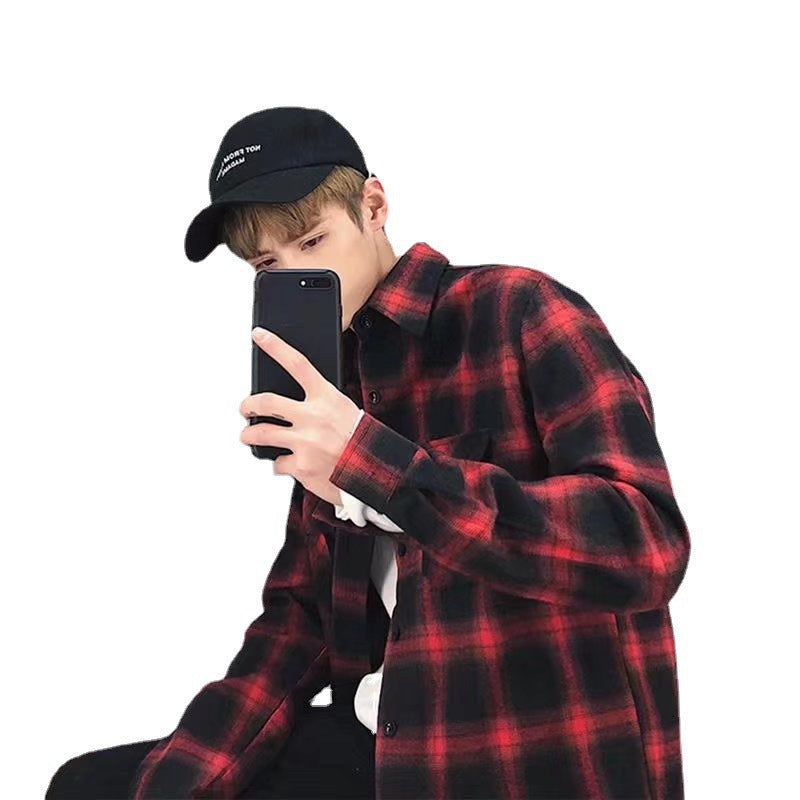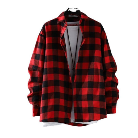 Men’s Japanese Plaid Loose Long Shirt Autumn Style