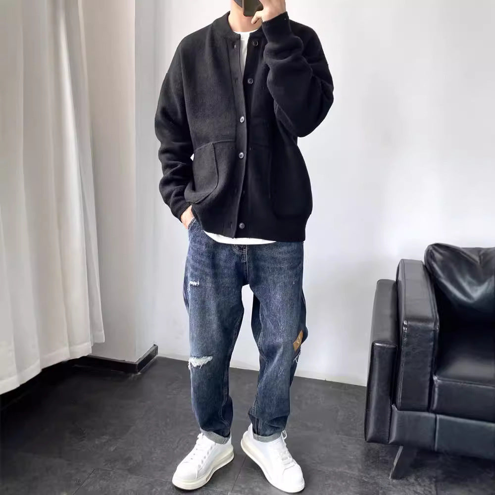 Stay warm and stylish this season with our Men’s Japanese Wool Cardigan Sweater Jacket 🧥❄️ — a cozy and fashionable choice for autumn and winter in Nepal. Inspired by Hong Kong style, this loose-fit crewneck sweater combines modern aesthetics with comfort, making it perfect for casual outings, office wear, or social occasions 🏔️🌬️.