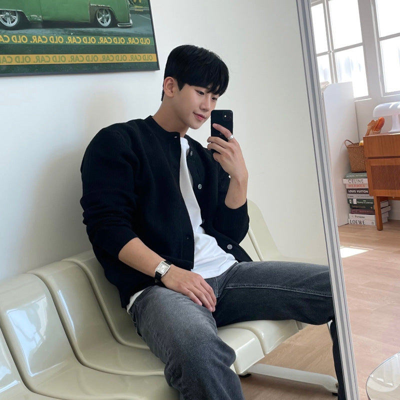 Elevate your autumn and winter outfits with this men’s Korean-style crewneck knitted sweater jacket—a stylish, versatile, and comfortable essential for modern men! 🌟