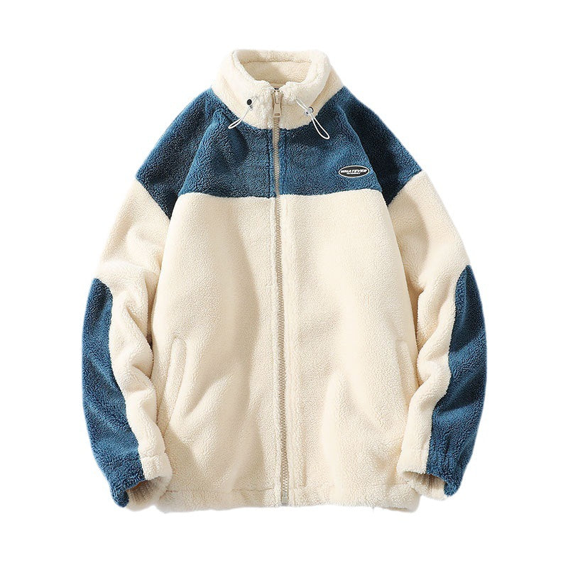 Men’s Lamb Wool Contrast Stitch Fleece Jacket