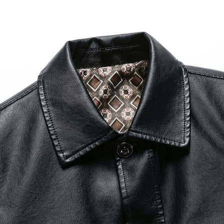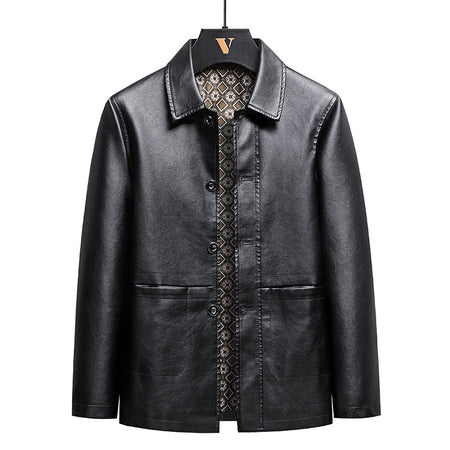 Men’s Lapel Leather Jacket – Autumn Korean Plus Size