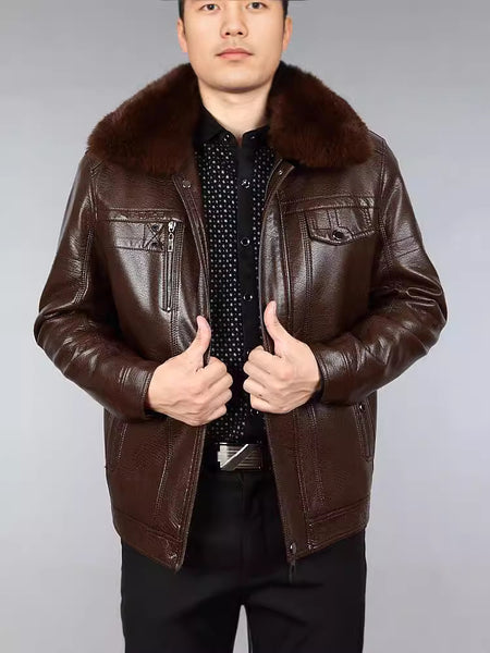 Men’s Leather Jacket with Fur Lining for Winter