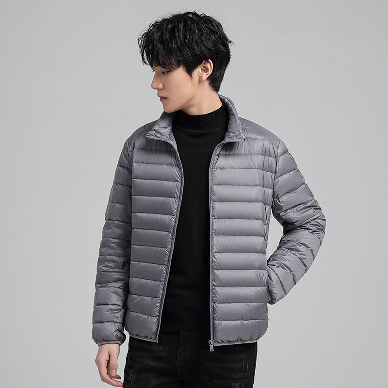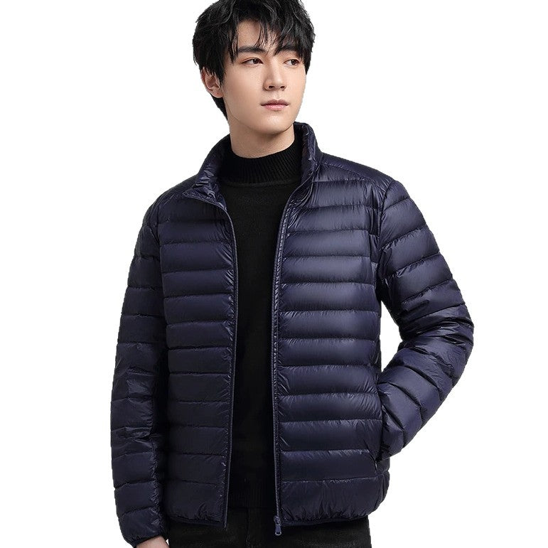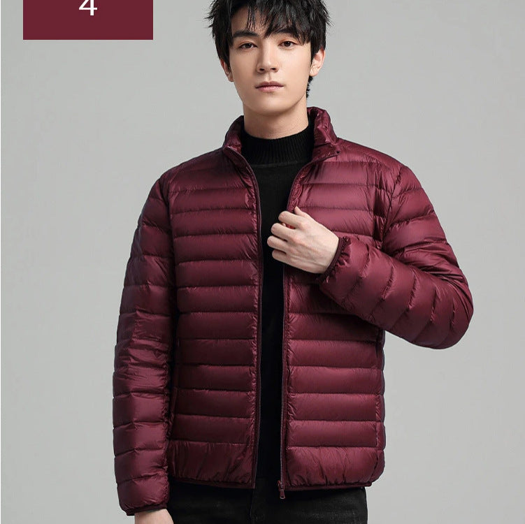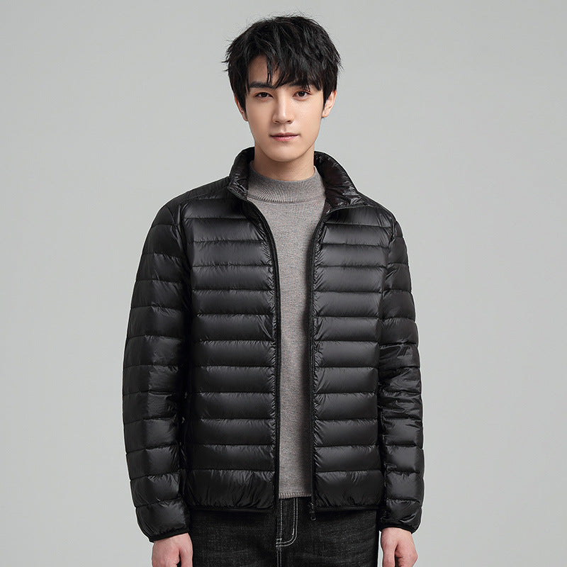 This Men’s Lightweight Down Jacket balances warmth, comfort, and modern design. Its high-quality white duck down ensures maximum insulation without bulk, while the hood and stand collar provide extra protection against winter chill. 🌟
