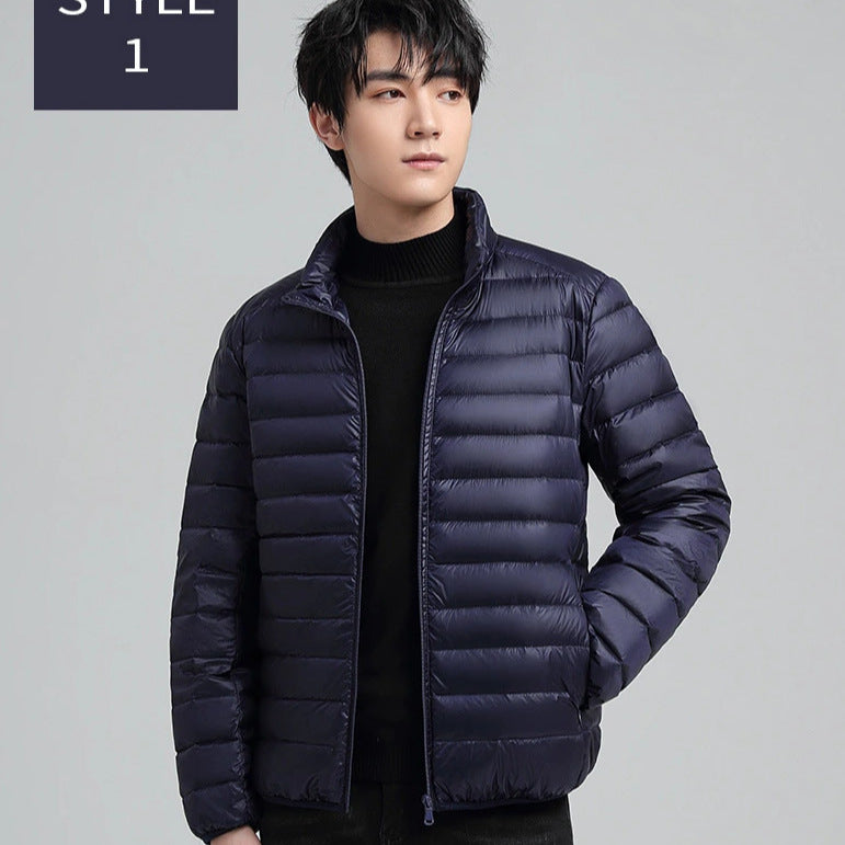 Stay warm and stylish this winter with our Men’s Lightweight Short Down Jacket! Designed for 2023 fashion trends, this hooded jacket features a stand-up collar and premium 90% white duck down filling, offering exceptional warmth while keeping a lightweight, comfortable fit. Perfect for city life, commuting, or outdoor adventures. ❄️🧥