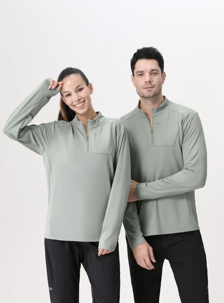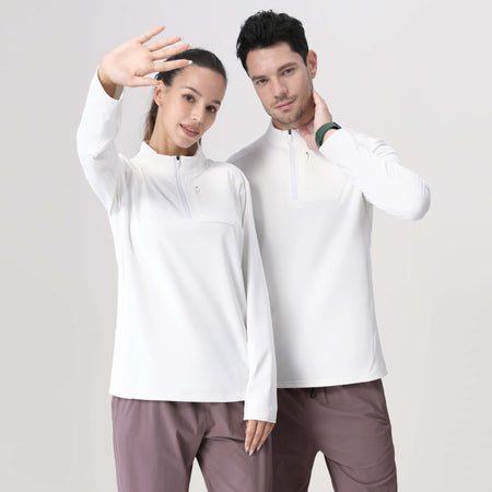Made with quick-drying, sweat-absorbent fabric 🌬️, it efficiently wicks moisture away from the body, keeping you cool during high-intensity activities. The half-zip design allows adjustable ventilation, while the long sleeves provide added sun protection ☀️ and warmth on windy days 🌬️—ideal for outdoor sports, hiking, or fitness routines in Nepal’s diverse terrain.