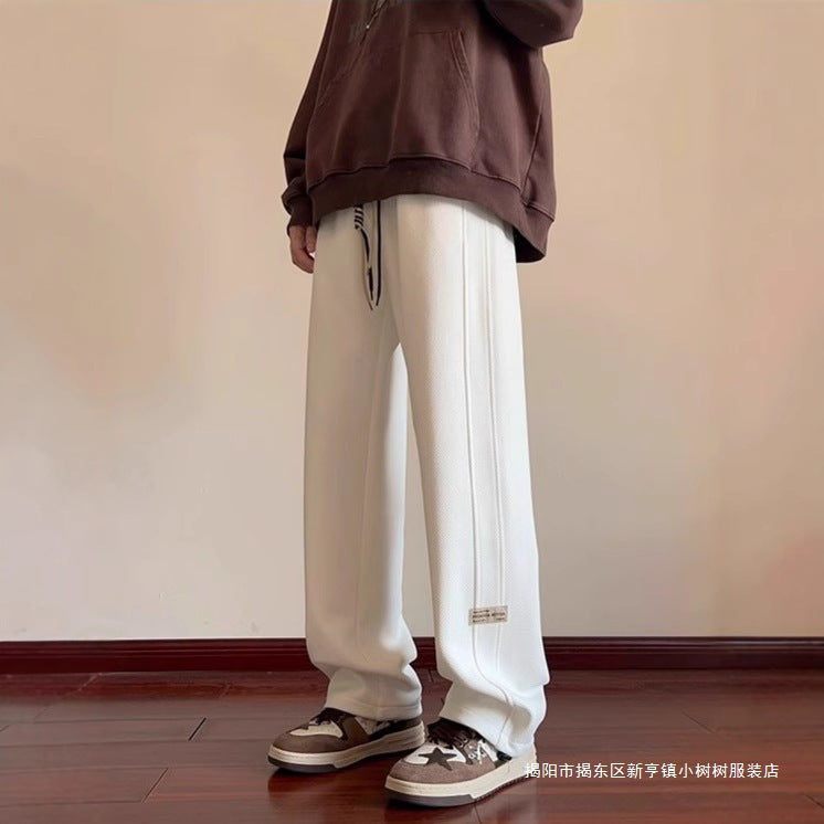 These high-end sweatpants combine the practicality of sportswear with the clean look of modern street fashion. The drawstring waistband provides flexibility, while the lightweight fabric makes them suitable for all-day wear. Whether you’re heading to class, running errands, or meeting friends, these pants adapt to your lifestyle while keeping you comfortable and stylish.