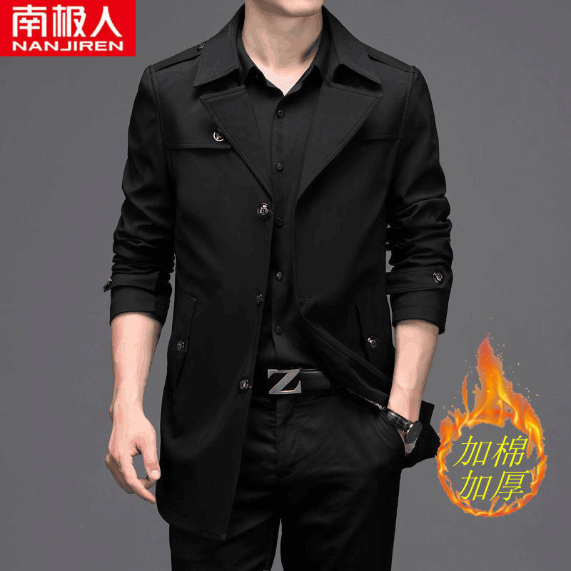 Stay warm and stylish with our men’s medium-long windbreaker coat, designed especially for spring, autumn, and winter wear. Tailored for middle-aged men, this padded coat with plus-velvet lining delivers the perfect blend of comfort, warmth, and timeless fashion.