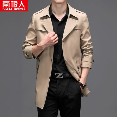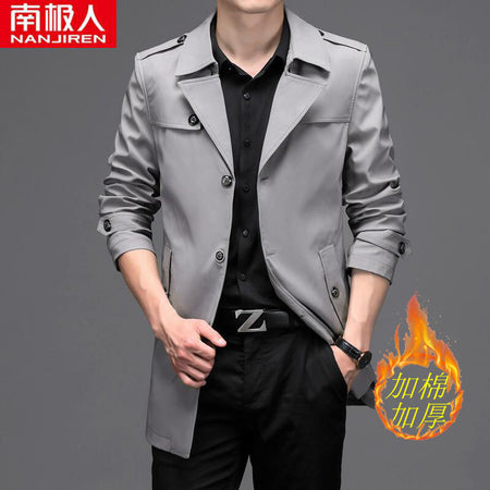Men’s Medium Long Windbreaker Coat Autumn Winter Jacket