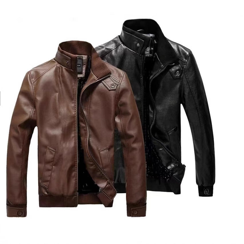 Men’s Motorcycle Leather Jacket | Spring Autumn Casual Baseball Style