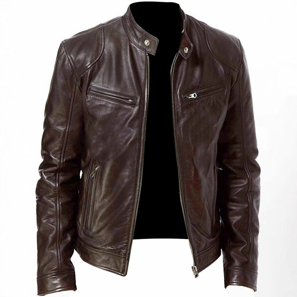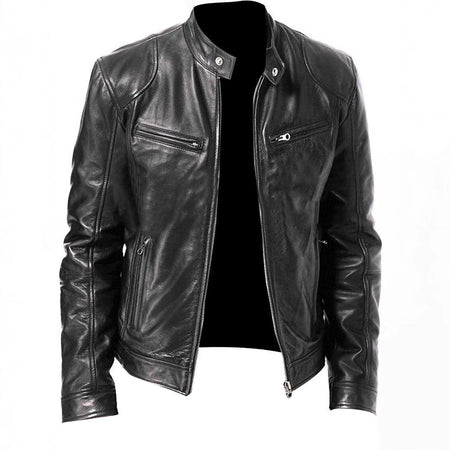 Men’s Multi-Pocket PU Leather Motorcycle Jacket