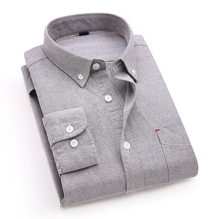 Men’s No-Iron Oxford Cotton Shirt – White Casual Long Sleeve