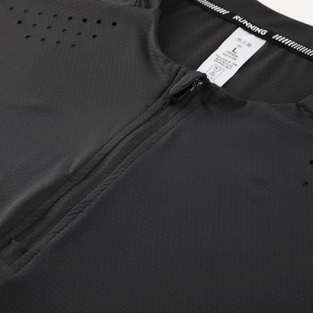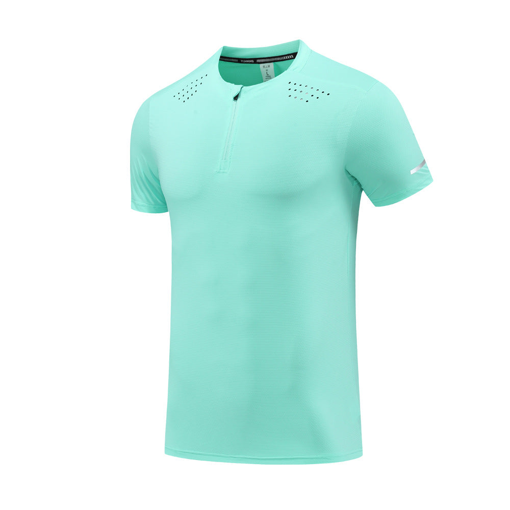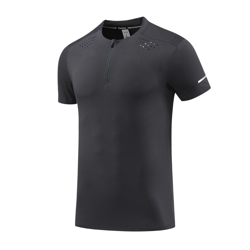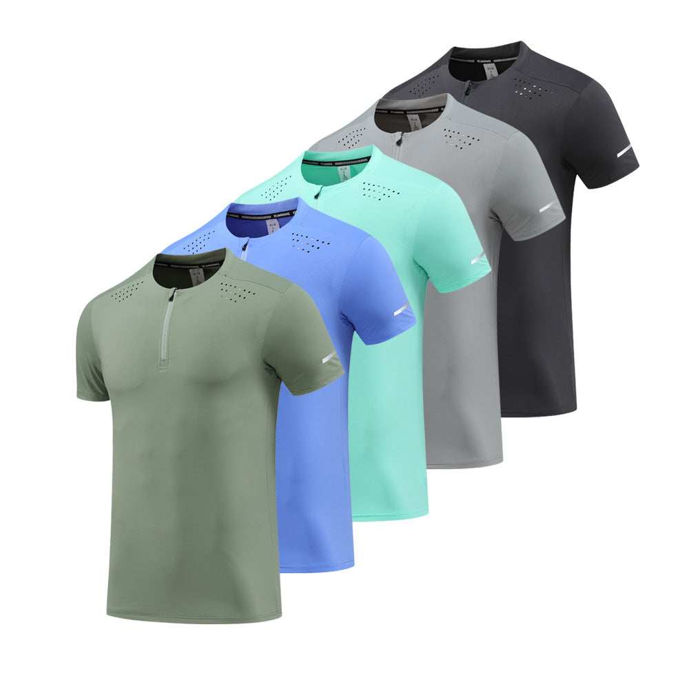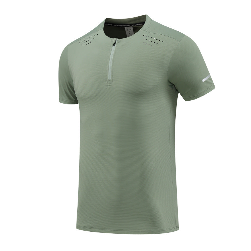 Men’s Nylon Ice Silk Half-Zip Quick-Dry Sports T-Shirt